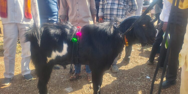 श्रीक्षेत्र माळेगाव दि. 19 डिसेंबर (प्रतिनिधी) माधव वाघमारे माळेगाव यात्रेत दरवर्षी पशु-पक्षी स्पर्धा तसेच खरेदी-विक्री मोठ्या प्रमाणात होत असते. याच पार्श्वभूमीवर यंदाच्या यात्रेत तब्बल सव्वा कोटी रुपये किंमत असलेला उस्मानाबादी जातीचा बोकड भाविक व व्यापाऱ्यांचे लक्ष वेधून घेत आहे.