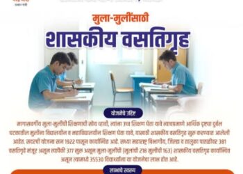 शासकीय वसतीगृह योजनेसाठी 26 ऑक्टोबरपर्यंत ऑनलाईन अर्ज करण्याचे आवाहन..