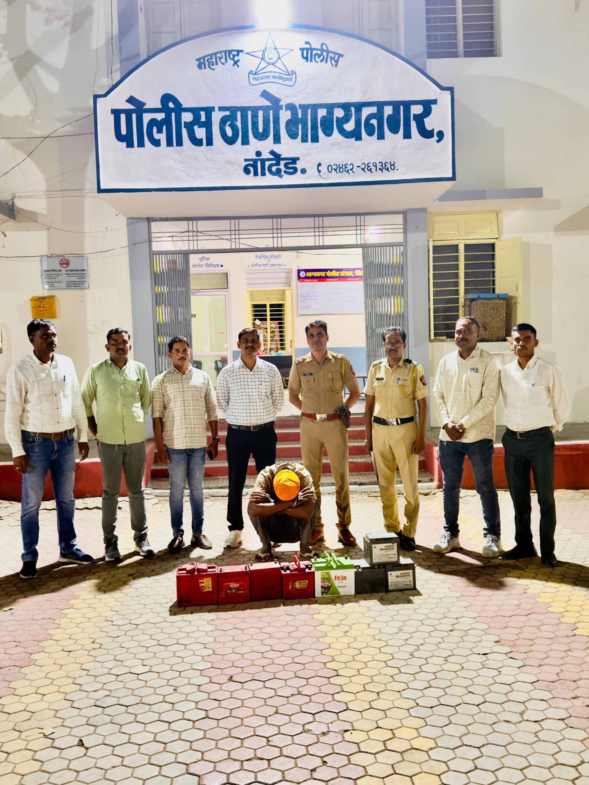 दिनांक १९ मार्च २०२६ रोजी मध्यरात्री एच.पी. पेट्रोल पंपासमोरून चार हायवा गाड्यांच्या ८ बॅटऱ्या चोरीला गेल्या होत्या. याप्रकरणी भाग्यनगर पोलीस ठाण्यात गु.र.नं. १५४/२०२६ कलम ३०३ (२) बी.एन.एस. प्रमाणे गुन्हा दाखल करण्यात आला होता. घटनेचे गांभीर्य ओळखून पोलीस उपनिरीक्षक विनोद देशमुख व त्यांच्या पथकाने तातडीने तपास चक्राला गती दिली.