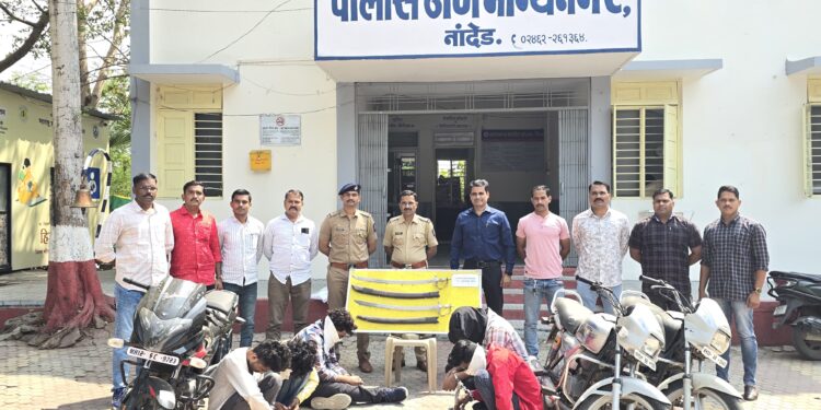 नांदेड ग्रामीण पोलिसांची मोठी कारवाई खुनाच्या गुन्ह्यातील दोन फरार आरोपींना वडगाव शिवारातून ठोकल्या बेड्या
