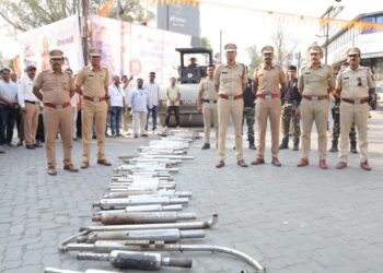 नांदेड पोलीस प्रशासनाची धडक कारवाई ८४ फटाका सायलेन्सर जप्त व नष्ट