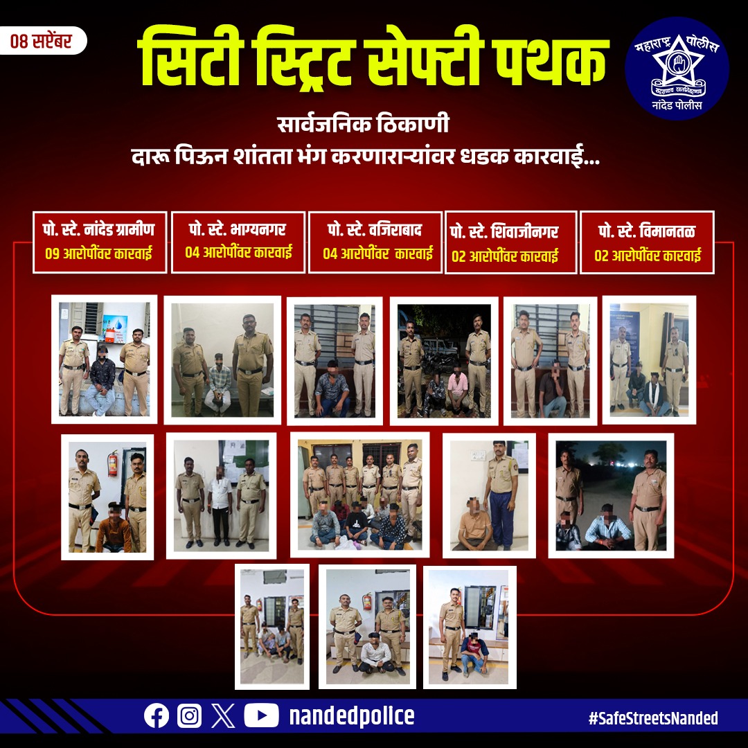 • सार्वजनिक ठिकाणी मध्य पिणाऱ्यास नांदेड पोलीस ची धडक कारवाई