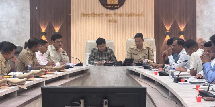 जिल्ह्यातील सार्वत्रिक निवडणुका पारदर्शक व शांततेत पार पडाव्यात यासाठी 5 नोव्हेंबर रोजी जिल्हाधिकारी कार्यालयात आढावा बैठक घेण्यात आली. या बैठकीस जिल्हाधिकारी राहुल कर्डिले अध्यक्षस्थानी होते. यावेळी पोलीस अधीक्षक अबिनाश कुमार, निवासी उपजिल्हाधिकारी किरण अंबेकर, जिल्हा सहआयुक्त गंगाधर इरलोड, सर्व उपविभागीय पोलीस अधिकारी, सर्व नगरपरिषद व नगरपंचायतीचे निवडणूक निर्णय अधिकारी, सहाय्यक व अतिरिक्त सहाय्यक निवडणूक निर्णय अधिकारी तथा मुख्याधिकारी उपस्थित होते.