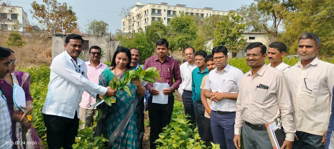 बैठकीपूर्वी, डॉ. निधी पांडे यांनी नांदेड तालुक्यातील धनगरवाडी येथील रेशीम शेतीच्या क्षेत्राला भेट दिली. यावेळी त्यांनी शेतकऱ्यांशी संवाद साधून रेशीम उत्पादनाच्या प्रक्रियेबाबत माहिती घेतली. प्रधानमंत्री धन-धान्य कृषी योजनेअंतर्गत रेशीम शेतीसाठी देण्यात येत असलेल्या केंद्र पुरस्कृत योजनांचीही त्यांनी पाहणी केली. या दौऱ्यात जिल्हाधिकारी राहुल कर्डिले, जिल्हा अधीक्षक कृषी अधिकारी दत्तकुमार कळसाईत, तालुका कृषी अधिकारी संजय चातरमल आणि रेशीम उत्पादक शेतकरी उपस्थित होते.