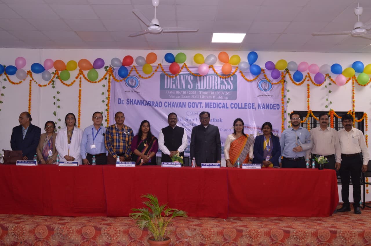 नांदेड, दि. ८ ऑक्टोबर – डॉ. शंकरराव चव्हाण शासकीय वैद्यकीय महाविद्यालय, विष्णूपुरी येथे नवीन प्रवेशित एम.बी.बी.एस. (2025-26) विद्यार्थ्यांचे स्वागत करण्यासाठी आयोजित ‘Dean’s Address’ हा कार्यक्रम मोठ्या उत्साहात संपन्न झाला. हा कार्यक्रम विद्यार्थ्यांना वैद्यकीय शिक्षणातील शैक्षणिक, नैतिक आणि व्यावसायिक मूल्यांची ओळख करून देणारा ठरला.