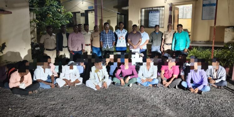तेथे नगदी, ४ चाकी वाहने, मोटरसायकल, २६ मोबाईल व जुगाराचे साहित्य मिळून
