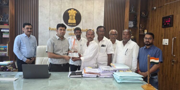 भोकर, दि. १५ ऑक्टोबर : अलीकडील अतिवृष्टीमुळे झालेल्या शेतीतील मोठ्या नुकसानीच्या पार्श्वभूमीवर भोकर तालुक्यातील पाळज गणेश मंदिर संस्थेने सामाजिक बांधिलकी जपत एक प्रशंसनीय पुढाकार घेतला आहे. संस्थेमार्फत मुख्यमंत्री सहायता निधीसाठी पाच लाख रुपयांचा धनादेश जिल्हाधिकारी राहुल कर्डिले यांच्या स्वाधीन करण्यात आला.