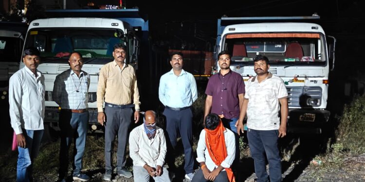 या दरम्यान, पोलीस उपनिरीक्षक महेश कोरे व त्यांच्या टीमला मिळालेल्या गोपनीय माहितीनुसार लोहा ते माळाकोळी मार्गावर अवैध वाळू वाहतूक करणारे दोन हायवा आढळले. त्यापैकी एक हायवा माळेगाव टोल नाक्याजवळ तर दुसरा खेडकरवाडी परिसरात पकडण्यात आला.
