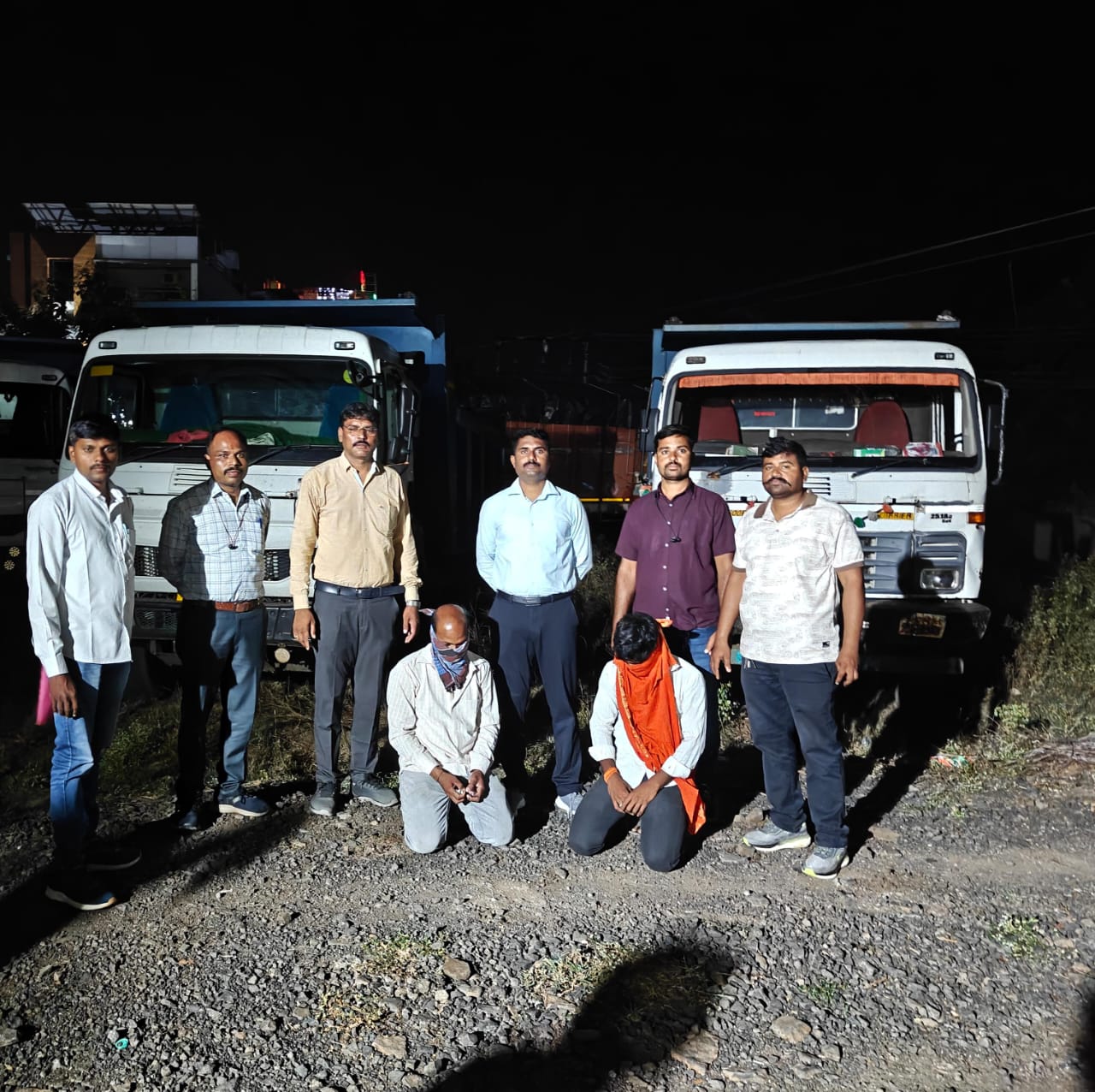 या दरम्यान, पोलीस उपनिरीक्षक महेश कोरे व त्यांच्या टीमला मिळालेल्या गोपनीय माहितीनुसार लोहा ते माळाकोळी मार्गावर अवैध वाळू वाहतूक करणारे दोन हायवा आढळले. त्यापैकी एक हायवा माळेगाव टोल नाक्याजवळ तर दुसरा खेडकरवाडी परिसरात पकडण्यात आला.