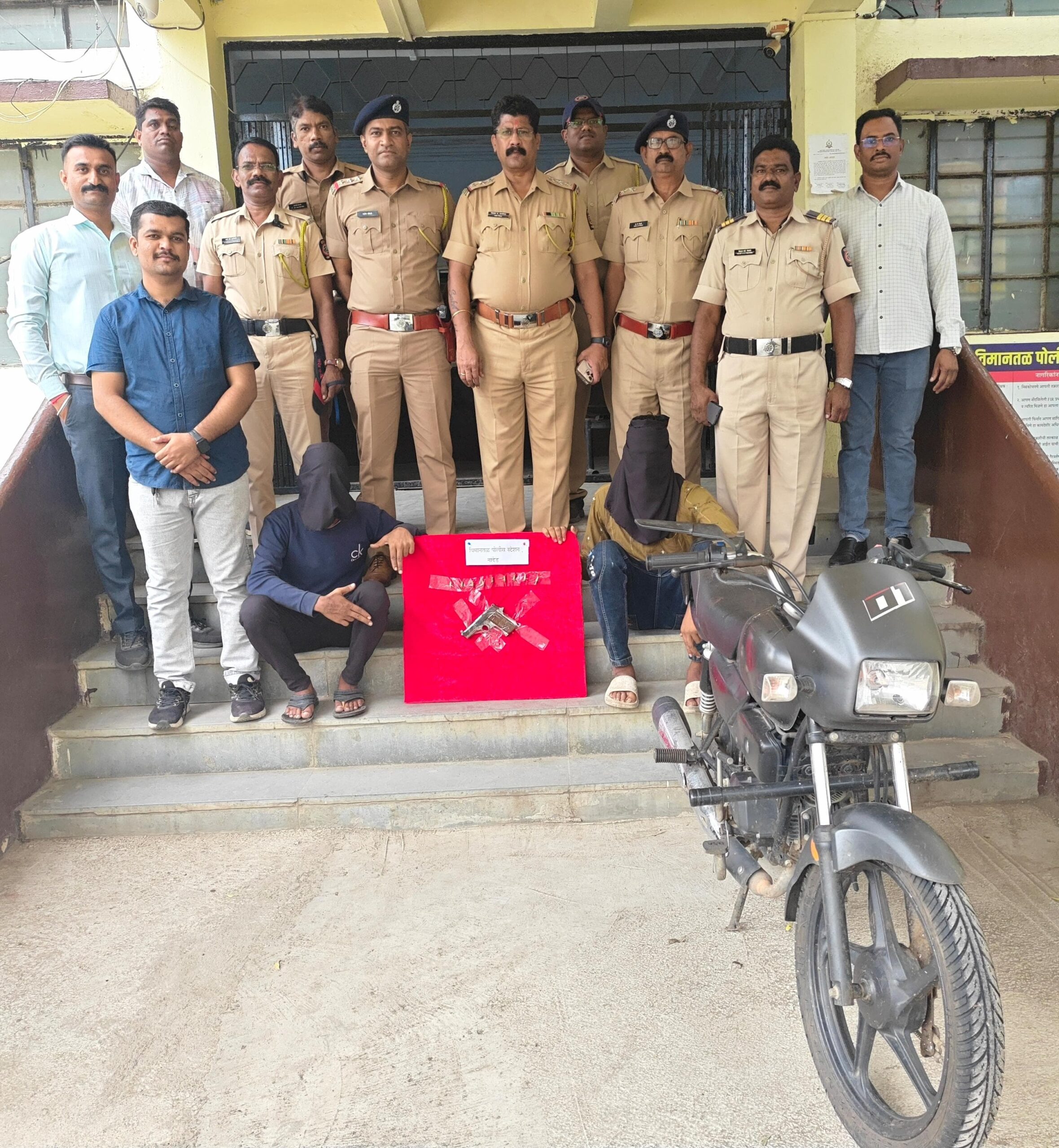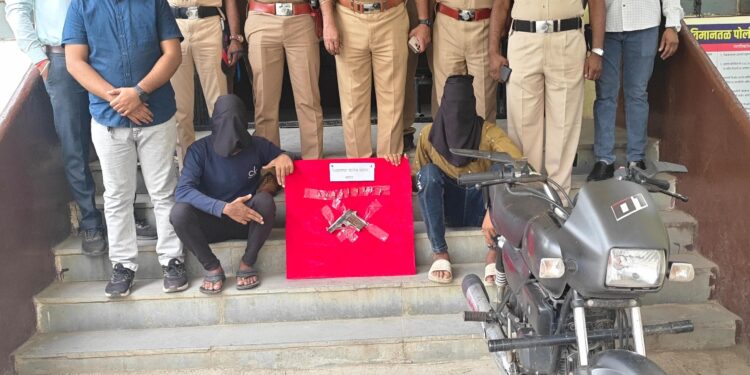 नांदेड – जिल्ह्यातील गुन्हेगारीवर आळा घालण्यासाठी पोलिस अधीक्षक मा.श्री. अबिनाश कुमार यांच्या मार्गदर्शनाखाली पोलिसांचे विशेष ऑपरेशन राबविण्यात आले. या ऑपरेशनदरम्यान विमानतळ पोलिस ठाण्याच्या पथकाने दोन सराईत गुन्हेगारांना अटक करून त्यांच्याकडून गावठी पिस्तूल, ०९ जिवंत काडतुसे व एक मोटार सायकल जप्त केली. जप्त मालाची किंमत तब्बल ₹ १,०४,०००/- इतकी आहे.