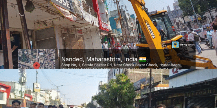 नांदेड पोलिस व महानगरपालिकेची संयुक्त धडक कारवाई  अवैध अतिक्रमण हटविण्यासाठी मोहीम राबवली