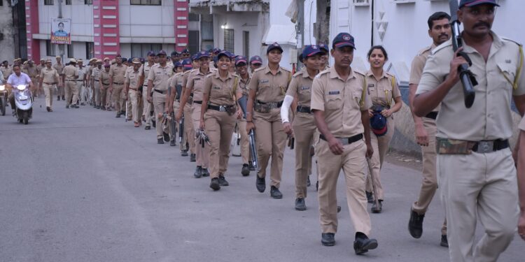 नांदेड 04/09/2025 गणेशोत्सव बंदोबस्त अनुषंगाने कायदा व सुखव्यवस्था अबाधित राखण्यासाठी मा .श्री. अबिनाश कुमार पोलीस अधीक्षक नांदेड यांच्या मार्गदर्शनाखाली जिल्ह्यातील सर्व पोलीस स्टेशन अंतर्गत ठिकठिकाणी शांतता कमिटी बैठका घेऊन लोकांना तसेच प्रत्येक गणेश मंडळांना शांतता राखण्याचे आव्हान केले आहे गणेशोत्सव बंदोबस्त शांततेत पार पाडावा यासाठी नांदेड जिल्ह्यातील महत्त्वाचे सर्व ठिकाणी योग्य तो पोलीस बंदोबस्त लावण्यात आला असून कोणतेही अनुचित प्रकार होणार नाही यांची सर्वतोपरी काळजी घेण्यात आली आहे गणेशोत्सव बंदोबस्त कमी नांदेड शहर ग्रामीण भागातील पोलीस अधिकारी अमलदार तसेच बाहेरून सुद्धा मोठ्या प्रमाणात पोलीस अधिकारी अमलदार यांना नेमण्यात आले आहे दि 06/09/2025 रोजी श्री गणेश विसर्जन होणार आहे श्री गणेश विसर्जन शांततेत पार पाडावे या अनुषंगाने मा श्री अविनाश कुमार पोलीस अधीक्षक नांदेड यांचे मार्गदर्शनाखाली नांदेड शहरात पोलीस स्टेशन इतवारा -इतवारा बाजार- सराफा- बर्फी चौक- जुना मोंढा वजीराबाद -कला मंदिर- शिवाजीनगर -आयटीआय चौक या मार्गावर पतसंंचलन घेण्यात आले सदर पतसंचनामध्ये मा श्री अविनाश कुमार पोलीस अधीक्षक नांदेड माननीय श्री सुरज गुरव अप्पर पोलीस अधीक्षक मा श्री परमेश्वर व्यंजने उपविभागीय पोलीस अधिकारी नांदेड शहर महा श्री प्रशांत शिंदे उपविभागीय पोलीस अधिकार इतवारा पोलीस निरीक्षण 08. सापोनि/पोउपनि 14. पोलीस अंमलदार 150 होमगार्ड 100 आरसीपी 02 क्यूआरटी प्लेटून 01. वृज वाहन व दोन ठार वाहनासह सहभागी झाले अशाच प्रकारे जिल्ह्यातील सर्व पोलीस स्टेशन अंतर्गत पतसंचलन घेण्यात येत आहे व इंडिया डॉमिनेशन ऍक्टिव्हिटी चालू आहे गणेशोत्सव बंदोबस्त अनुषंगाने जिल्ह्यात कायदा व सुख व्यवस्था अबाधित राखण्यासाठी मा श्री अविनाश कुमार पोलीस अधीक्षक नांदेड यांनी भयमुक्त व डीजे मुक्त गणेशोत्सव साजरा करणे बाबत यांना जिल्ह्यातील सर्व नागरिकांना आवाहन केले आहे