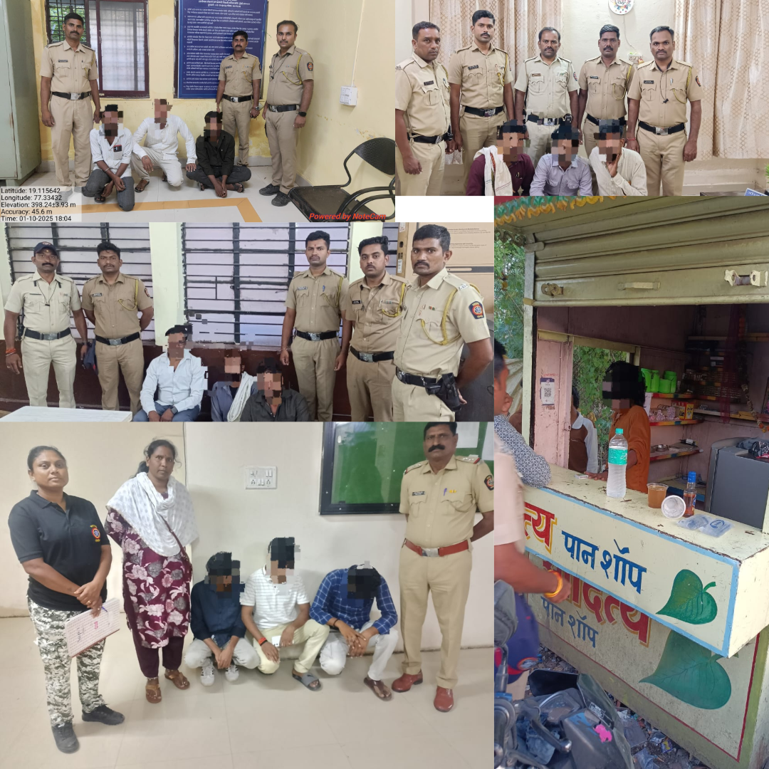 या सर्व कारवायांमध्ये महाराष्ट्र दारूबंदी अधिनियम कलम 68 तसेच शांतता भंगाच्या संबंधित कलमान्वये गुन्हे दाखल करण्यात आले आहेत.