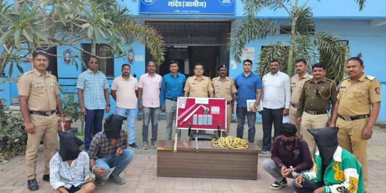 नांदेड ग्रामीण पोलिसांचा मोठा कारनामा  दरोड्याच्या तयारीत असलेली टोळी गजाआड १ लाख ५३ हजार शस्त्रसाठा जप्त