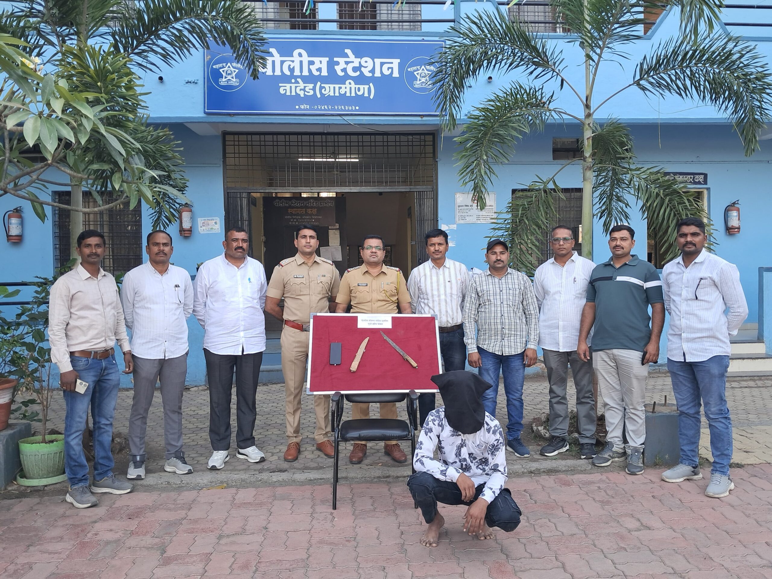 या प्रकरणी पोलीस स्टेशन नांदेड ग्रामीण येथे गु.र.नं. ३३०/२०२६ नुसार भारतीय न्याय संहिता कलम ३५३(२) आणि शस्त्र अधिनियम कलम ३/२५, ७/२५, ४/२५ अन्वये गुन्हा दाखल करण्यात आला आहे. ही कारवाई पोलीस अधीक्षक अबिनाश कुमार, अपर पोलीस अधीक्षक अर्पणा पाटील, सुरज गुरव, आणि उपविभागीय पोलीस अधिकारी प्रशांत शिंदे यांच्या मार्गदर्शनाखाली पोलीस निरीक्षक ओमकांत चिंचोलकर व त्यांच्या पथकाने केली आहे.