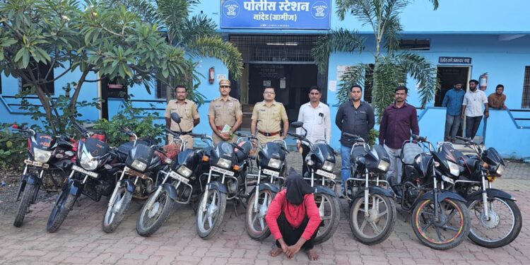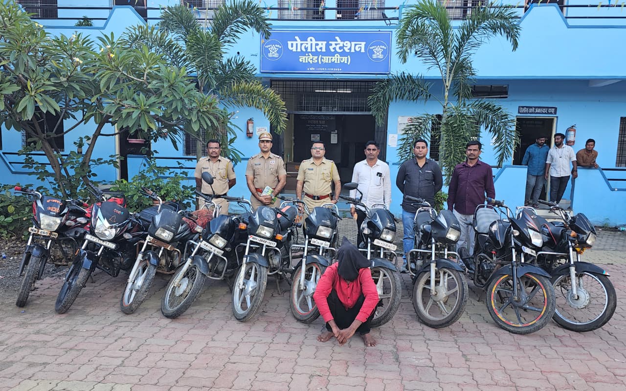 पोलीस ठाणे नांदेड ग्रामीण हद्दीत गेल्या काही महिन्यांपासून मोटार सायकल चोरीच्या तक्रारी वाढल्या होत्या. पोलिस निरीक्षक ओमकांत चिंचोलकर यांच्या मार्गदर्शनाखाली विशेष पथक तयार करण्यात आले. तपास पथकाने तांत्रिक साधनांचा वापर करून आणि गुप्त माहितीच्या आधारे सापळा रचून आरोपी नवनाथ बालाजी वडजे (वय 23, रा. वडरवाडा ता. मुखेड, जि. नांदेड) यास ताब्यात घेतले. चौकशीत त्याने नांदेडसह विविध ठिकाणांहून 10 मोटार सायकली चोरी केल्याची कबुली दिली.