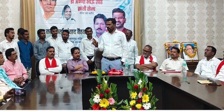 डॉ. अण्णाभाऊ साठे क्रांती सेनेच्या वतीने नांदेड येथील शासकीय विश्रामगृहात २७ जानेवारी रोजी कार्यकर्ता संवाद बैठकीचे आयोजन करण्यात आले होते. या बैठकीत ते मार्गदर्शन करत होते. या कार्यक्रमाच्या अध्यक्षस्थानी आशोक उफाडे हे होते.