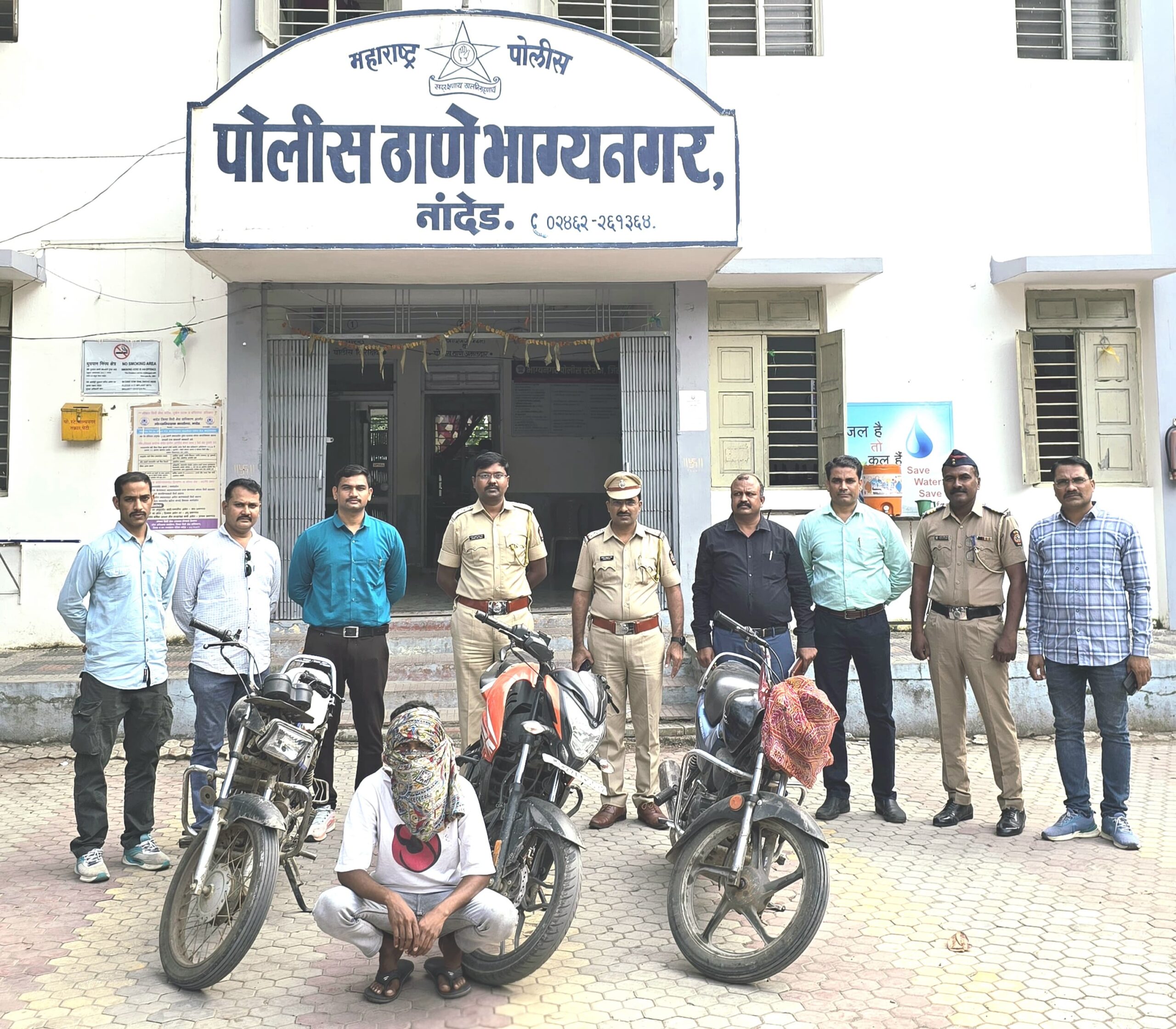 भाग्यनगर पोलिस ठाण्यात गु.र.नं. ५४७/२०२५ कलम ३०३(२) भा.दं.वि. नुसार तक्रारदार महेश मारोतराव बलोरे रा. गणेशवाडी ता.पालम, जि. परभणी यांचा मोटरसायकल चोरीचा गुन्हा नोंदविण्यात आला होता. त्याचप्रमाणे वजीराबाद पोलिस ठाण्यातही गु.र.नं. ४२४/२०२५ कलम ३०३(२) भा.दं.वि. अंतर्गत राजकुमार संभाजी गडंबे रा. सोमेश कॉलनी यांचा वाहन चोरीचा गुन्हा दाखल करण्यात आला होता.