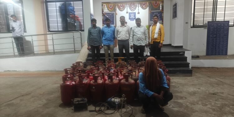 अवैधरित्या धरणुती गॅस भरताना आरोपी ताळ्यावर ४६ सिलेंडरसह १ लाख ४८ हजार मुद्देमाल जप्त