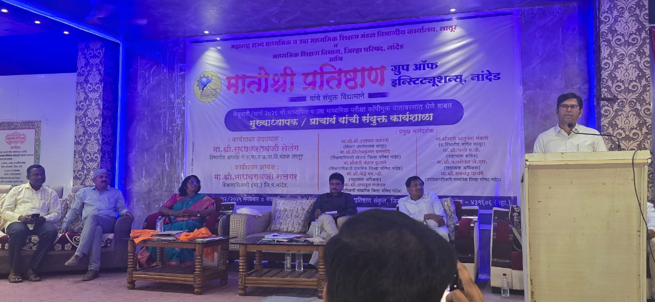 मागील वर्षी 2025 मध्ये झालेल्या परीक्षांतील अनुभव लक्षात घेता यंदा अधिक काटेकोर नियोजन व अंमलबजावणी करण्यात येणार असल्याचे त्यांनी स्पष्ट केले. फेब्रुवारी/मार्च 2026 च्या परीक्षांच्या पार्श्वभूमीवर जिल्ह्यातील माध्यमिक शाळांचे मुख्याध्यापक व कनिष्ठ महाविद्यालयांचे प्राचार्य यांची संयुक्त पूर्वतयारी आढावा बैठक आज मातोश्री प्रतिष्ठाण इंजिनिअरिंग कॉलेज, खुपसरवाडी (ता. जि. नांदेड) येथे पार पडली. ही बैठक विभागीय मंडळाचे अध्यक्ष सुधाकररावजी तेलंग यांच्या अध्यक्षतेखाली आयोजित करण्यात आली होती.